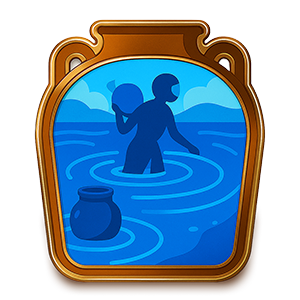 제주의 물을 은유하는 잔잔한 물결 위, 해녀의 삶이 홀로그램으로 피어납니다. 물허벅 조형물과 어우러진 해녀의 움직임은 제주 용천수에서 바다로 이어지는 깊은 숨결 '숨비소리'를 들려주는 듯합니다.